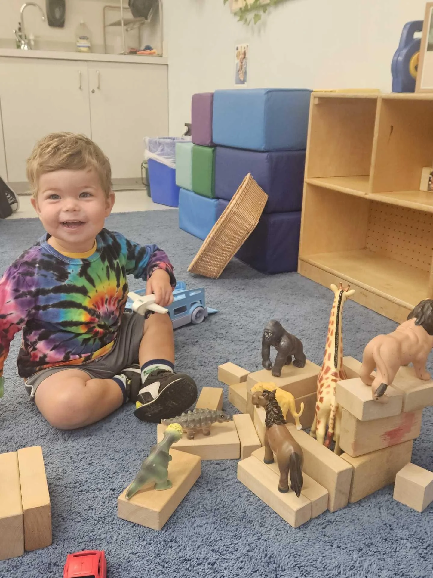 Our program provides a safe and nurturing environment while responding to each child’s growing interest and needs. Motor coordination is developed through games, puzzles and blocks. Language development is encouraged through play, songs and stories. Our Toddler program focuses on the whole child and teaches your toddler about friendship, understanding his or her emotions, develop physical skills, creative thinking and problem solving.